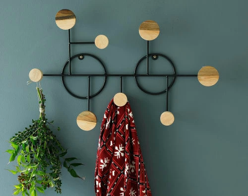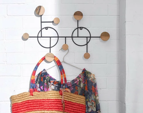 Maisons Du Monde Portemanteaux Et Patères Patère 6 Crochets En Métal Noir Et Bois Hévéa