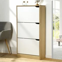 Casâme Meubles D’entrée Et à Chaussures Penderie D’entrée Avec Rangement – Blanche Et Marron