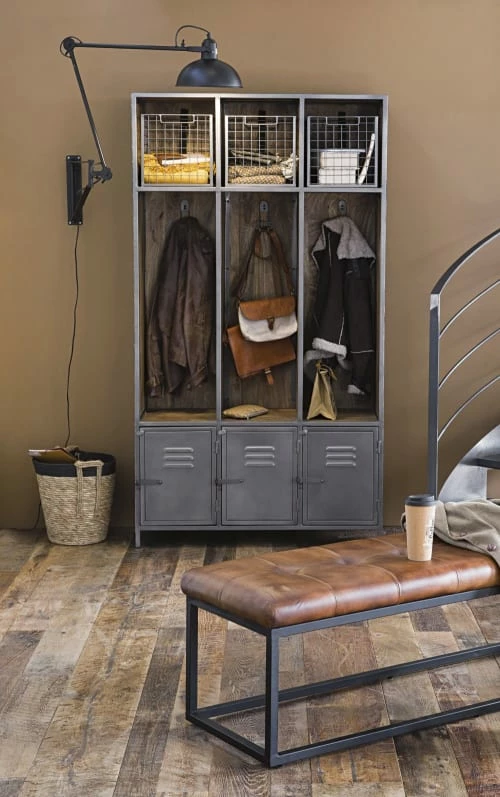 Authentique, ce meuble d’entrée en métal gris et manguier LEWIS emprunte son style à l’époque industrielle. Si ses casiers rappellent ceux des travailleurs d’usine d’antan, ses paniers grillagés apporteront une touche graphique pour plus de modernité. Fonctionnel, ce meuble d’entrée vous permettra de suspendre vos manteaux, ranger vos chaussures et de placer vos accessoires au même endroit pour une entrée ordonnée. Pour plus de confort, ajoutez un banc.