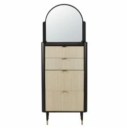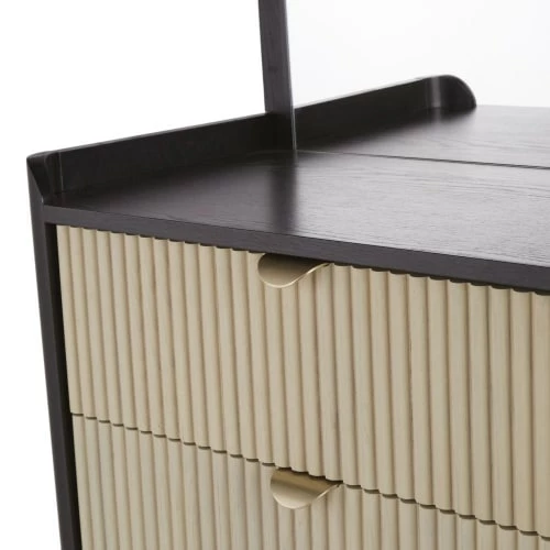 Panneau du dessous, arrière, côté, arrière et fond de tiroirs : panneaux de fibres de moyenne densité et mélaminé, finition coloris noir mat