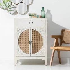 Altobuy Meubles D’entrée Et à Chaussures Meuble D’entrée 2 Portes 1 Tiroir Finition Cannage