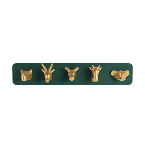 Il n’y a qu’à repenser aux jours de pluie et au bonnet, à l’écharpe et au blouson ruisselants, pour réaliser qu’un porte-manteau pour suspendre un parapluie, un sac à main est parfois la seule vraie façon de bien les ranger, à l’air libre et à portée de main. Noé est un porte-manteau mural muni de cinq patères en tête d’animal : gain de place, pas encombrement au sol, un as du rangement ! Cela nous étonne peu, au fond, quand on pense que son ancêtre a pu jadis caser un couple de chaque espèce animale sur son arche. Avec son design créatif, ce porte-manteau en bois vert et résine dorée vous sera aussi secourable qu’attrayant.